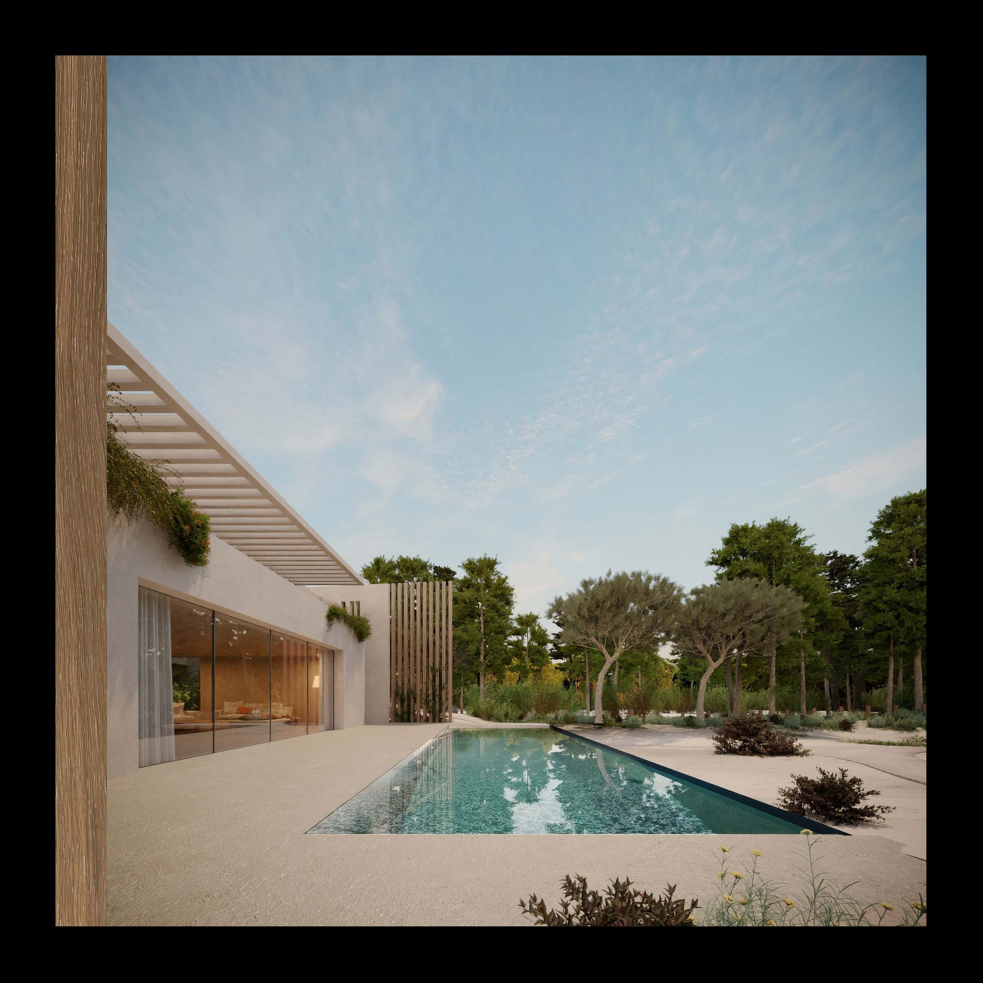 The infinity pool acts as a mirror of the landscape and a focal point, extending the social space and inviting contemplation. The house adopts energy-efficient and environmentally responsible solutions, harmonizing with the local ecosystem. ⠀⠀⠀⠀⠀⠀⠀⠀⠀⠀⠀⠀⠀⠀⠀